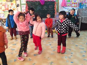 新年到,新年好。我们班里真热闹,唱歌跳舞乐淘淘。新的一年来到了,我们健康又长高,聪明乖巧懂礼貌。看我们的宝宝在元旦联欢会上尽情的展示着自己!