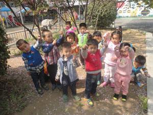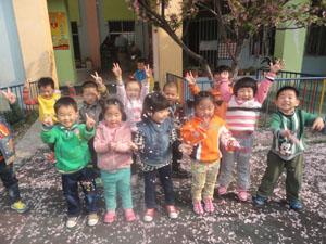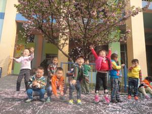 春天来了,小班的小朋友来到了樱花树下,看到粉色的樱花瓣好美啊,我们认识了樱树的特征,还知道了樱花的颜色和形状,风爷爷来了,樱花瓣像下雨一样洒在我们身上,看我们玩的多开心啊。