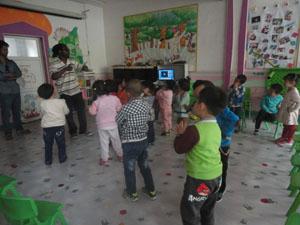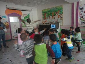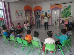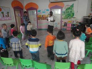 今天小一班来了两位新朋友,是ROSE 和JICK,黑黑的,高高的,帅帅的老师,他们在和小朋友们做游戏,特别开心~~,还学了几个单词呢jimp ,hop ,run,walk 老师都说小一班的小朋友很聪明呢!!