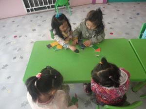三角形,正方形,长方形,圆形宝宝们它们都在干什么呢?原来在变变变呢,他们自由的组合,一会变成了小房子,一会又变成了飞机---------图形宝宝可以变化多种,看,小一班的小朋友都在认真的摆放图形宝宝呢~~~