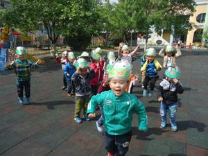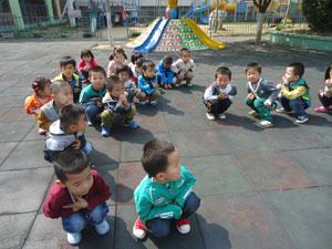 我们是小蛙卵,春天天气变暖和了,我们动起来了,我们小三班的小朋友摇身一变,变成了可爱的小蝌蚪,我们蹲在地上不动,小蝌蚪快乐的在场地上游来游去,不知不觉的,两腿踢一踢,小蝌蚪前腿长出来了,手臂伸一伸,小蝌蚪长大了,变成了可爱的小青蛙。呱呱,呱呱。