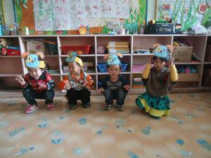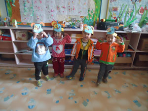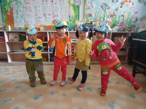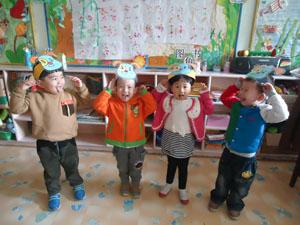 “一只小花狗,蹲在大门口,眼睛黑黝黝,想吃肉骨头”,看小四班的小朋友正戴着头饰表演可爱的小花狗呢,“汪汪汪、、、、、、”一群快乐的小花狗。瞧,他们多开心!