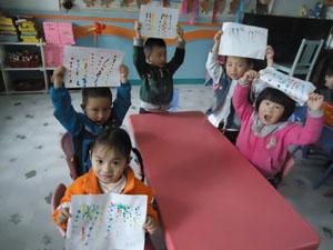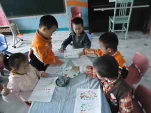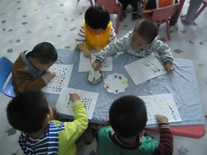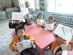 “春雨,春雨,沙沙沙,沙沙沙。”今天我们小三班要玩手指印画,小朋友们玩得可开心了。雨滴是什么样子呢?给小云朵画上雨滴吧!小朋友们选择自己喜欢的颜色,用食指蘸颜料,在小云朵的下面画上雨滴。小朋友们画得很认真,不一会儿一幅幅五颜六色的雨滴就画好了。让我们快来看看吧!