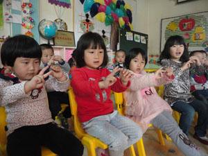 五只小猴荡秋千,一只鳄鱼游来了,啊呜~一只小猴被吃掉。四只小猴荡秋千,一只鳄鱼游来了,啊呜~两只小猴被吃掉。三只小猴荡秋千……..这个手指游戏,能让幼儿按照顺序数数,还锻炼了幼儿对数字的敏感性,让幼儿愿意学习4的形成。