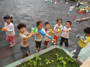 小水枪,真神奇,喷的高来喷的远。今天我们小班小朋友拿着自己喜爱的水枪与伙伴们一起玩游戏,用水枪喷画,浇菜地……我们玩得好开心呀!