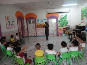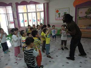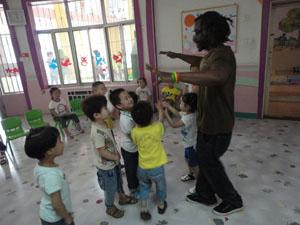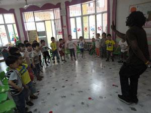 Flower !花 bee!蜜蜂bird !小鸟 黑黑的外交老师又来小一班上课啦。看,小朋友和老师配合的多么默契,小朋友们都认真的学着单词,棒极了!