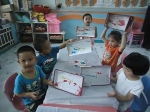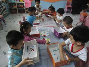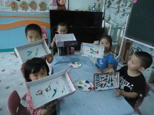 小小石头用处可真大,今天我们小三班小朋友用石头当“画笔”,用鞋盒当“画板”,双手端住鞋盒并晃动,让小石头在鞋盒底部滚动“绘画”。瞧!我们的作品漂亮吗?你也动手做一做吧!