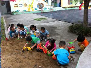 今天我们小三班小朋友们认识了一个新朋友——挖土机,它可是个大力士。瞧!我们来到了沙子旁边,学着挖土机做挖土动作,挖土机可真是力大无比呀!