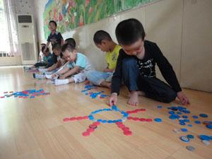 智力彩盖是我们小二班玩教具其中的一个,小朋友们都爱玩,因为它的玩法很多,可以拼摆图形,可以进行点数,帮助幼儿练习5以内的点数能力。瞧!他们玩的多认真啊~