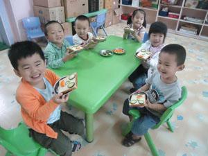 方方的面包片,大家都爱吃。今天,小四班的我们用黄瓜、胡萝卜、面包片做了一个可爱的面包片娃娃,好看又好吃,大家快来尝尝吧,好香啊!