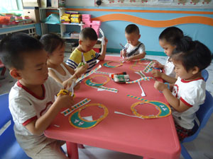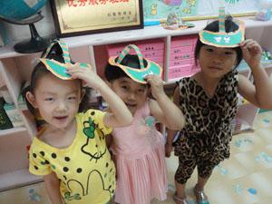 今天我们小二班和小三班的小朋友在一起动手制作了太阳帽,经过剪、粘、折等步骤,终于完成了,戴帽子来炫耀一下!这个活动激发幼儿的审美情趣,体验动手操作带来的愉悦,培养幼儿对美工活动的喜爱。