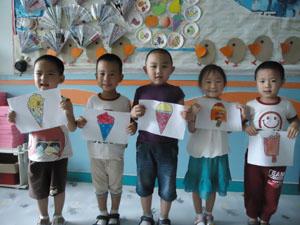夏天来了,小三班的冰激凌工厂也开业了,今天小朋友们用油画棒给冰激凌工厂里的冰激凌添画上了五彩缤纷的颜色,让冰激凌有了不同的口味,我们都可喜欢吃了!你们也快来我们的冰激凌工厂一起制作好吃的冰激凌吧!
