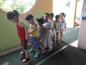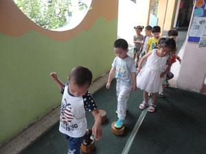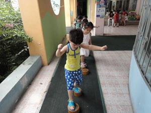 走、走、走,走木桩,就像在走独木桥,要排队不拥挤,一定不要掉下去!谁的平衡力最好呢?看看是谁最勇敢的小朋友呢!