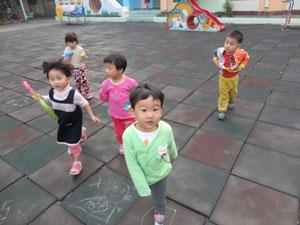 “我快抓住啦!我快抓住啦!老师,老师,老师我抓住泡泡啦!”“哈哈哈,一抓就抓没啦!”小五班的小宝宝们追着泡泡满院子跑,追得园儿里每个角落都有宝宝的笑声。