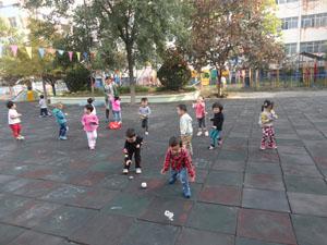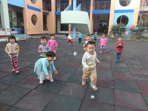 下午的时候,老师发给我们每人一张报纸。变!变!变!老师教给我们一起团报纸球,把一张报纸变成球。我们还一起抛球球、仍球球和球球一起玩儿。我们的小手是不是很厉害啊!