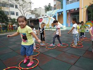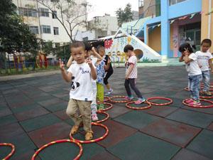 小兔乖乖,跳过圈圈,越过小河,回家喽!大家好!我们是小四班的新宝宝们,看看,"小兔子"们跳的棒不棒啊!