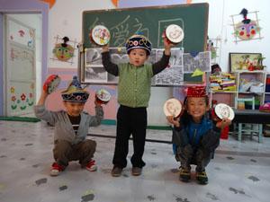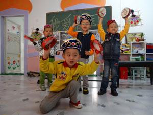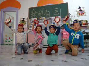 十月一日是我们伟大祖国的生日,我们要在幼儿园里为祖国献首歌,我们带上了漂亮的民族帽,手拿铃鼓,为祖国献歌、跳舞,我爱我的幼儿园,我爱我的祖国!