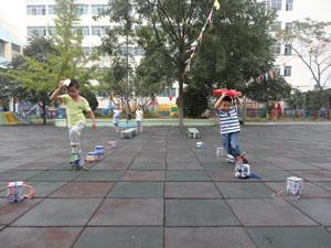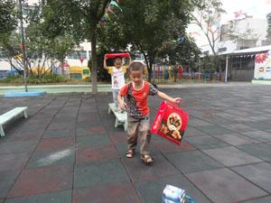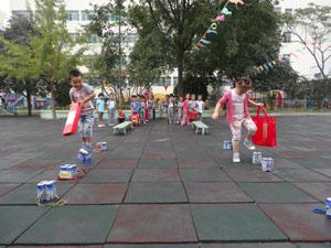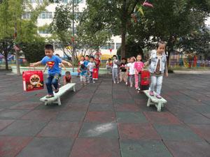 今年过节不收礼,收礼只收大月饼…呵呵呵,我们走过小桥,锻炼了平衡能力;又来到森林木桩,虽然有点困难,但是我们还是勇敢地克服了,瞧我们把月饼都顺利送到了。