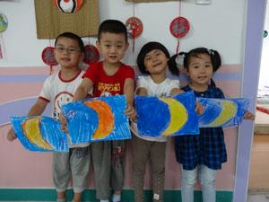 中秋节刚刚过去,月亮姑娘又减肥了,变成了弯弯的小船,我们用老师画的点连接成了弯弯的月亮,给她做了一件合适的衣裳,涂上了美丽的夜空,星星藏在哪里了呢?