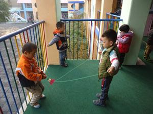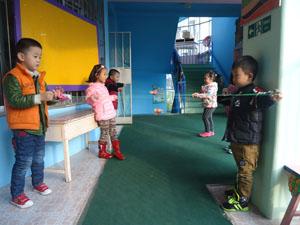 瞧!我们中二班小朋友自己利用用废旧物品制作的瓢虫拉力器,两个小朋友共同努力才能完成,本活不但动锻炼了幼儿的动手操作能力还增强了孩子们的合作意识。
