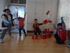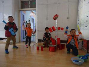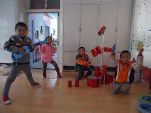 我们用废旧物制作的乐器,我们还组成了一个小乐队,各自分工非常明确,有敲鼓的、摇沙锤的、弹吉他的等,我们玩的不亦乐乎!本活动锻炼了幼儿在区域活动时的组织能力和社会交往能力。