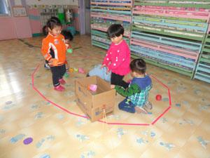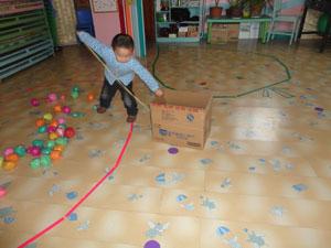 小手臂慢慢拉,一二三出发。小五班的宝宝正在扮演“纤夫”生活,一次一次的运送“货物”。每人运送一次后还剩有许多“货物”,怎么办呢?宝宝们自发的齐上阵,团结的力量大,运送“货物”仅仅用了一次就完成。看宝宝们乐呵的!