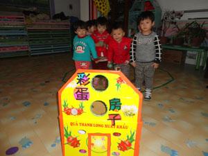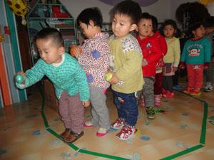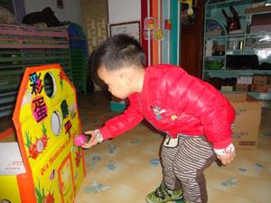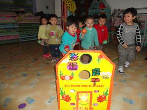 一二三投,哎呀!没进。再来一次,一二三哎呀!又没进。这彩色房子怎么这么难瞄准呢?让我们在近一点点,彩蛋对准了,一二三,哈哈进咯!一遍一遍又一遍,不同的方向不同的距离,小五班的宝宝都有进步(╯▽╰)你发现了吗?