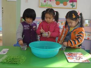 今天小一班的我们一起来制作了冻冰花,我们在器皿里装上水,放入撕好的彩纸,然后放在寒冷的室外,第二天来园大家就能欣赏到好看的冻冰花了。