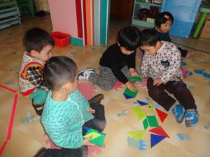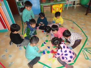 家里来了许多的图形宝宝,今天图形宝宝要和小朋友来玩游戏。你能猜出来图形宝宝跟小五班的宝宝玩的游戏吗?请你慢慢从照片中寻找吧!