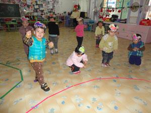 我的马儿,嘚二驾,哒哒哒快快跑。拉缰绳、挥鞭子、抬起马蹄快快跑。驾驾!驾驾!快快跑!小五班的宝宝们表现的如何?哈哈!一匹一匹小马儿好开心!