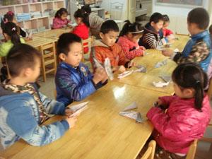 大二班的孩子们利用手里的废旧报纸变成一个一个的三角形,自由拼插成自己喜欢的物品,锻炼了孩子们的动手能力和想象能力。