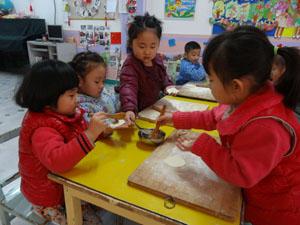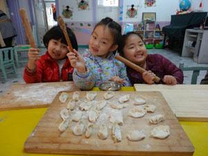 我们用团圆、压扁、捏等方法包饺子,把馅儿放到饺子皮中间,对折饺子皮有规律的捏摺,并且有规律的摆放在木板上,烧开水之后我们将饺子煮出来。哇~香喷喷啊,你想不想吃啊?自己动手做出来的水饺好美味啊!
