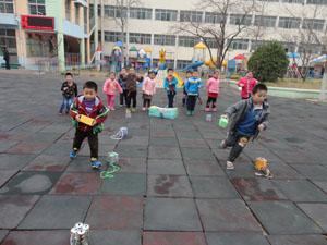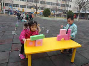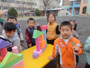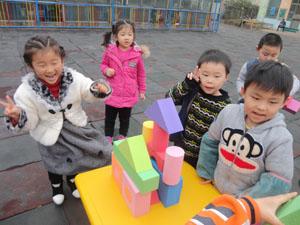今天我们中三班的小朋友们玩了一个好玩的游戏:造房子比赛。这个游戏需要小朋友共同合作才可以完成。我们每人拿一块积木,S形绕过梅花桩,用手中的积木堆摞成一座小房子,比赛谁造的房子最快最好。快看,我们的比赛正在火热进行,快来和我们一起玩吧!