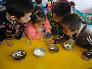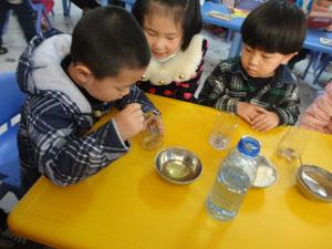 今天我们中三班的小朋友做了一个有趣的小实验,看看在油、糖、面、沙这几种材料里面有哪些是可以在水里溶化制作成我们小朋友平时喝的饮料的,通过实验小朋友们不仅增长了知识,还学会了制作饮料。看我们多认真呀,快来一起继续探索可以做饮料的材料吧!