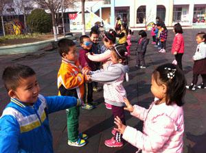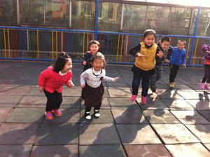 今天我们中三班的小朋友们玩了一个好玩的游戏,听声音找朋友,小朋友们先根据听到的老师发出的小动物的叫声去模仿小动物走路,然后两人一组根据同伴的提示声音闭着眼去找自己的小伙伴。看我们玩的多开心啊,快来跟我们一起玩吧!