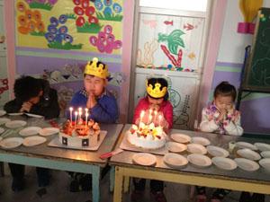 刚开学,我们班就有3位小朋友迎来了生日!还有两个小朋友是同年同月同日的生日噢!全班的小朋友都为他们小寿星送去了生日礼物,并且陪他们一起许愿吹蜡烛,一起切蛋糕,然后一起品尝了美味的蛋糕,哈哈!无论是心里,还是肚肚里,装的都是满满的甜蜜!