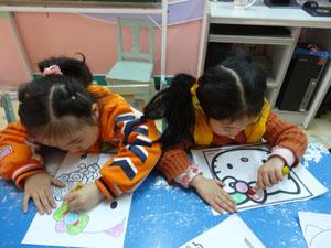 这周我们有节故事课《漂亮的蝴蝶结》孩子们非常喜欢听这个故事,都被那个蝴蝶结吸引了,小朋友要求画蝴蝶结,蝴蝶结在小朋友们的认真努力下变得非常的漂亮。小朋友们给蝴蝶结涂上了五颜六色的颜色,漂亮极了,孩子们真棒!