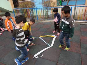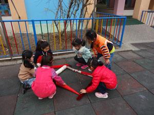 小朋友用“工具”通过齐心协力一起制作了小房子,每个小朋友手里只有一个“工具”搭建不了房子怎么办呢?于是想了一个办法,大家一起来搭建房子,办法不错!就这样美丽的房子在小朋友们的努力下,搭建成功,孩子们真聪明!