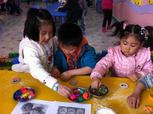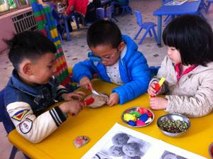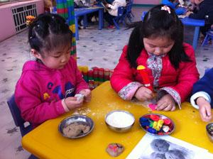 今天我们中三班的小朋友们体验当一名小面点师,小朋友们先将面团按压成蛋糕胚,然后在蛋糕胚上用各种豆类﹑彩泥装饰成人们不同的表情,这样一个普通的蛋糕胚就变成了具有不同表情的表情蛋糕,高兴﹑难过﹑生气,小朋友们都表现得惟妙惟肖。表情蛋糕就要出炉了,快来看看吧!