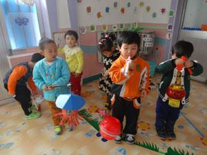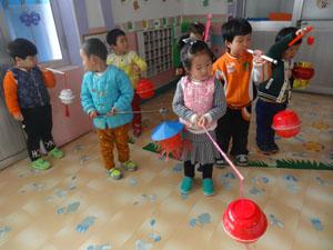 白天草丛呆,夜晚空中游。一盏小灯笼,挂在身后头。你们知道这是什么吗?哈哈!是萤火虫,瞧!我们小五班的小朋友提着自制的灯笼来装扮小小萤火虫,上飞飞,下飞飞。打着小灯笼,来到花丛中。左看看,右看看“飞到草丛中”、“飞到花朵中”