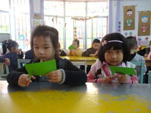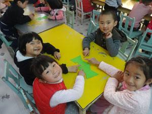 我们用小剪刀制作了一个小梯形,然后我们与小朋友合作,让梯形宝宝变的更漂亮,瞧我们有的组合成了一颗大树,有的组合成了粉色的台灯,我们的想象力很丰富吧。
