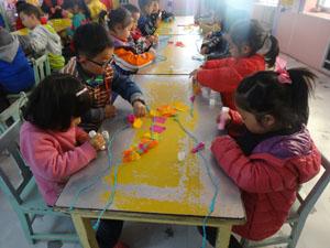 春天是美丽的,春天是七彩的,我们中二班的小朋友在认真制作花环,我们先将皱纹纸搓成柳条,再将漂亮的小花朵装饰一下,然后量一量合适的头围,将花环固定,戴在头上是不是很漂亮啊。