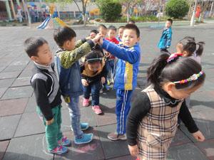 “城门城门几丈高,走进城门套一套……”今天我们中三班的小朋友们迎着春风过城门,由两个小朋友们做城门,其它小朋友们做过城门的人,儿歌念完,城门关闭,被关住的小朋友站在城门身后等待。看我们玩得多开心啊,快来和我们一起玩吧!