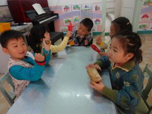 叮咚叮咚,啦啦啦,一阵一阵清脆的声音传过来,小朋友用各种音乐“工具”制作出各种动听的声音,好听极了~有小鼓、三角铃、铃等等,小朋友演奏了一场十分精彩的音乐会!