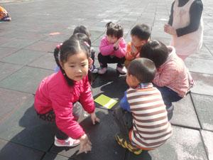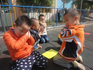 小二班的小朋友对色彩可感兴趣了。我喜欢红色,我喜欢蓝色,我喜欢绿色,今天我们跟颜色宝宝一起做游戏,我们可以很快的按老师要求找到相对应的颜色,请学小白兔跳到红色宝宝的家,哈哈,我们成功了!
