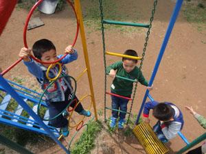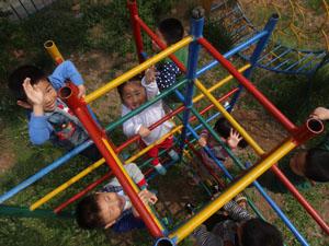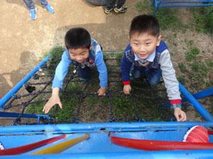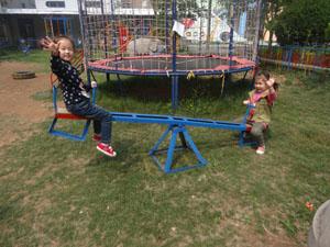 游乐场的设施是小朋友最喜欢的,小女生特别喜欢去玩跷跷板;小男生当然是喜欢攀爬类的项目了,有的小朋友稳稳的爬到最顶,有的小朋友喜欢攀爬绳索,你们总是表现的不怕困难,勇于向前,孩子们,老师为你们加油!
