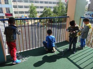 听说有个地方,笼子里关了许多小动物,我们要把它们全部解救出来,我们悄悄的将小动物们栓在绳子上,楼上的小朋友用力的拉绳子,将小动物拉上去,再解开绳子,将小动物放入救助站。本活动锻炼了幼儿团结合作的能力。