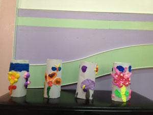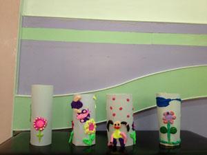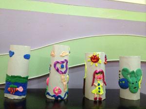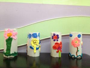 我有一双小小手,可爱又能干,我要把那万花筒,装饰的很漂亮。我有一双小小手,捏捏花,捏捏草,捏捏太阳公公,捏捏我的好朋友,一个好看的万花筒做成了。小朋友看!我们大四班的小朋友厉害吗?你们也来动动手吧……