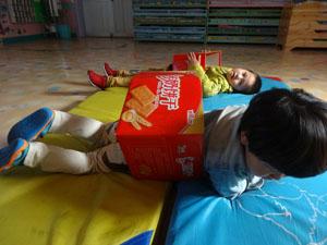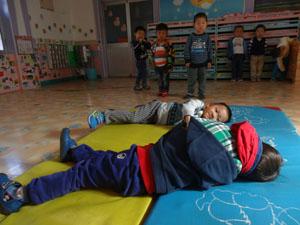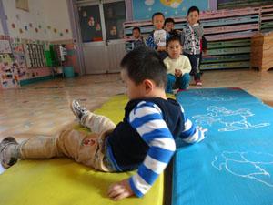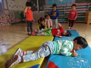 骨碌碌骨碌碌,小身体慢慢转一圈两圈三圈。骨碌骨碌骨碌好开心!来点难度挑战一下,骨碌一圈,骨碌又是一圈。看看小五班的小宝宝们是不是很厉害啊!
