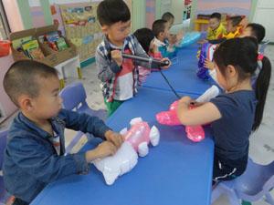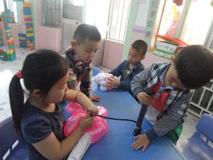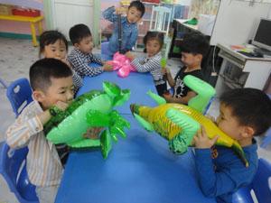 “充气玩具真好玩,瘪瘪身体是饿了,吃上空气圆鼓鼓”。今天我们中三班的小朋友们就玩起了充气玩具,我们慢慢将“饿了”的充气玩具用充气筒充好,然后和这些充气玩具一起玩,充气玩具多好玩啊,快来和我们一起玩吧!